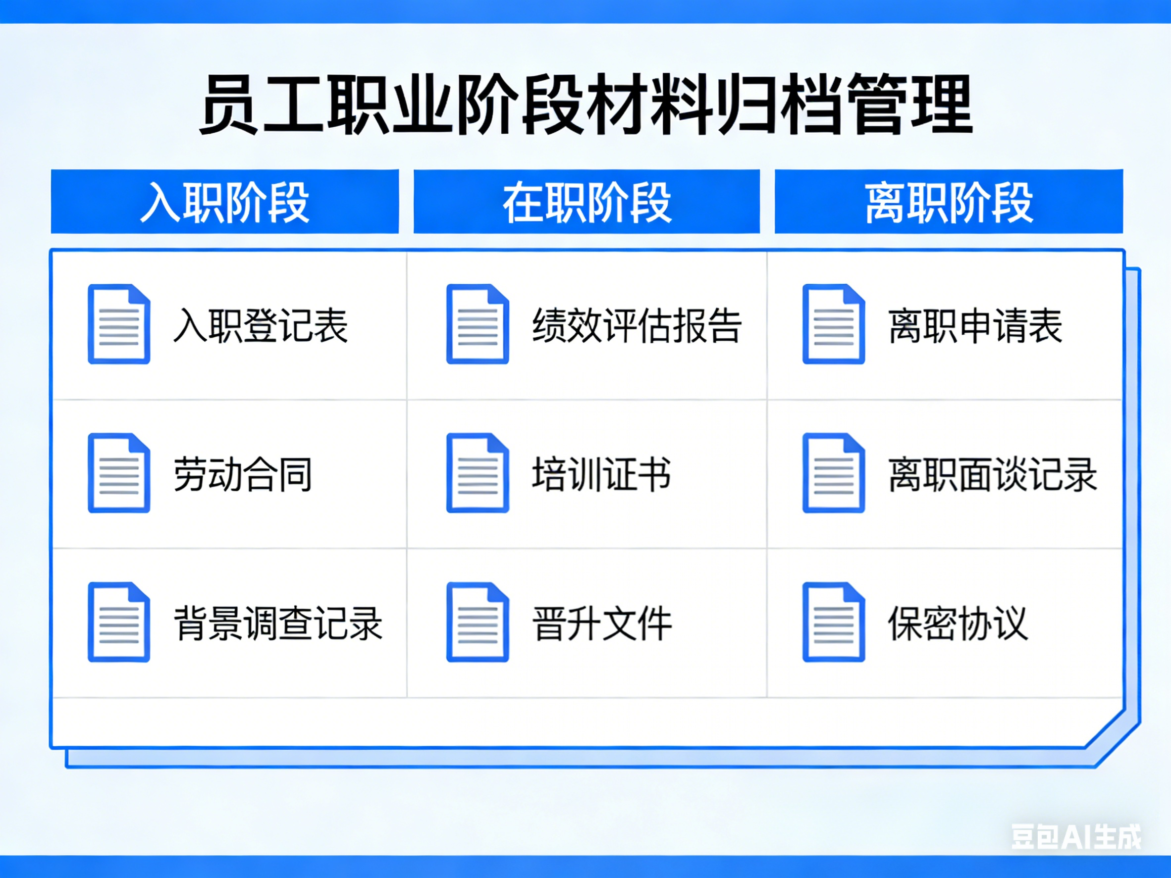 综上所述,员工入职、晋升、离职材料的归档管理与查阅权限控制,是企业人力资源管理与信息安全的重要组成部分。通过明确归档范围、分级管控权限、完善保障措施,既能确保员工档案的凭证价值与可追溯性,也能有效防范信息泄露风险,为企业合规经营与稳定发展提供支撑。