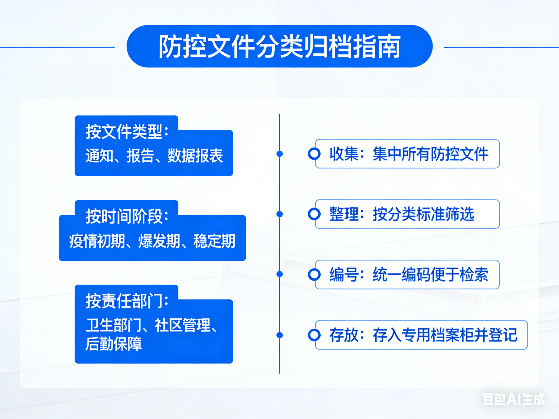 分类归档需结合防控工作流程与信息特性,按“业务维度+载体类型”双重标准划分,确保检索便捷、关联清晰,避免信息碎片化。
